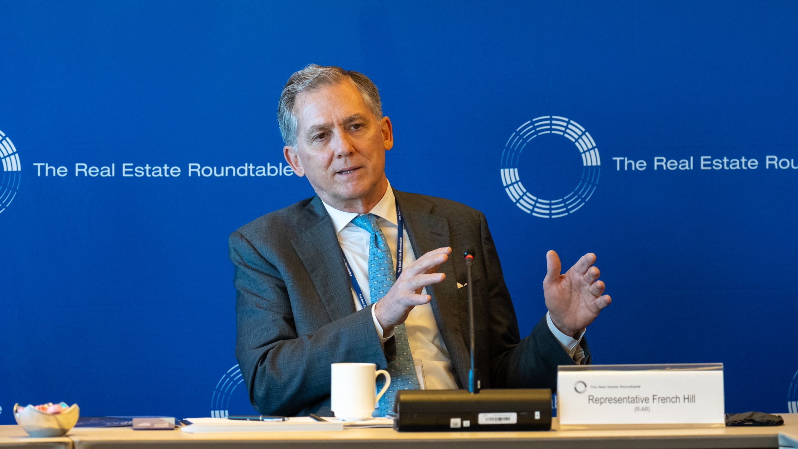 Rep. French Hill (R-AR) (Chair, House Financial Services Committee; Permanent Select Committee on Intelligence) outlined congressional priorities on capital formation, digital assets, simplifying federal regulation for community banks, and reauthorization of the Terrorism Risk Insurance Act (TRIA).