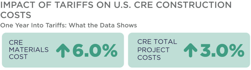- A new Cushman & Wakefield report found that tariff rates in effect as of April 7 would raise construction materials costs by 6.0 percent relative to a 2024 baseline and increase total project costs by roughly 3.0 percent, adding more pressure to housing and commercial real estate development. (Cushman & Wakefield, April 8)