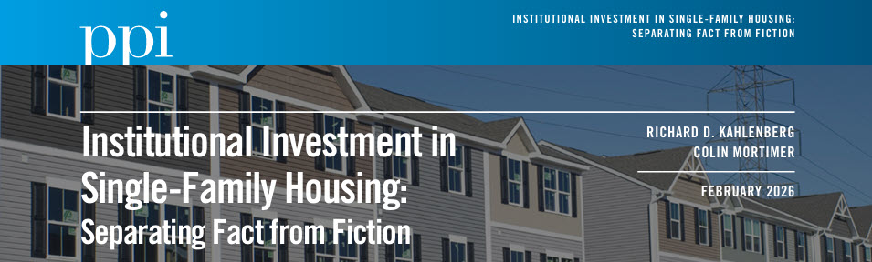 - Research continues to show that restricting institutional capital is unlikely to improve affordability and could create new supply constraints. The PPI report, for example, notes that build-to-rent development is becoming an increasingly important source of new housing supply. (Progressive Policy Institute, February 2026)
